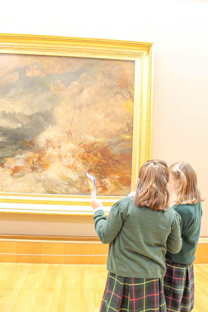 They were on a mission to research seascapes, as part of their ‘Storms and Shipwrecks’ topic this term. The Head of Art at the Junior School, Mr Markou, talked about the work of JMW Turner, before everyone looked closely for details and effects in the many wonderful paintings.
