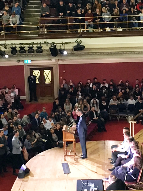 Our last two speakers were Jacob Rees Mogg and Nick Clegg. Jacob Rees Mogg split the hall in half, as it burst into both applause and boos, almost imitating the House of Commons. The queues to the microphones quickly resembled the queues to the canteen, with students hungry for answers to their questions. Nick Clegg ended the event with a speech on the importance of small parties in politics, a potential attempt to convince us to vote Liberal Democrat at the next election. He too spoke eloquently and answered questions with enthusiasm, even when they were quite critical.